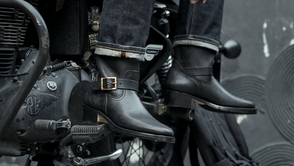 Engineer boots are a classic American work-boot style, originally designed for durability and functionality. Their laceless, rugged construction gained widespread popularity in the post World War II era, especially during the rise of motorcycle culture.